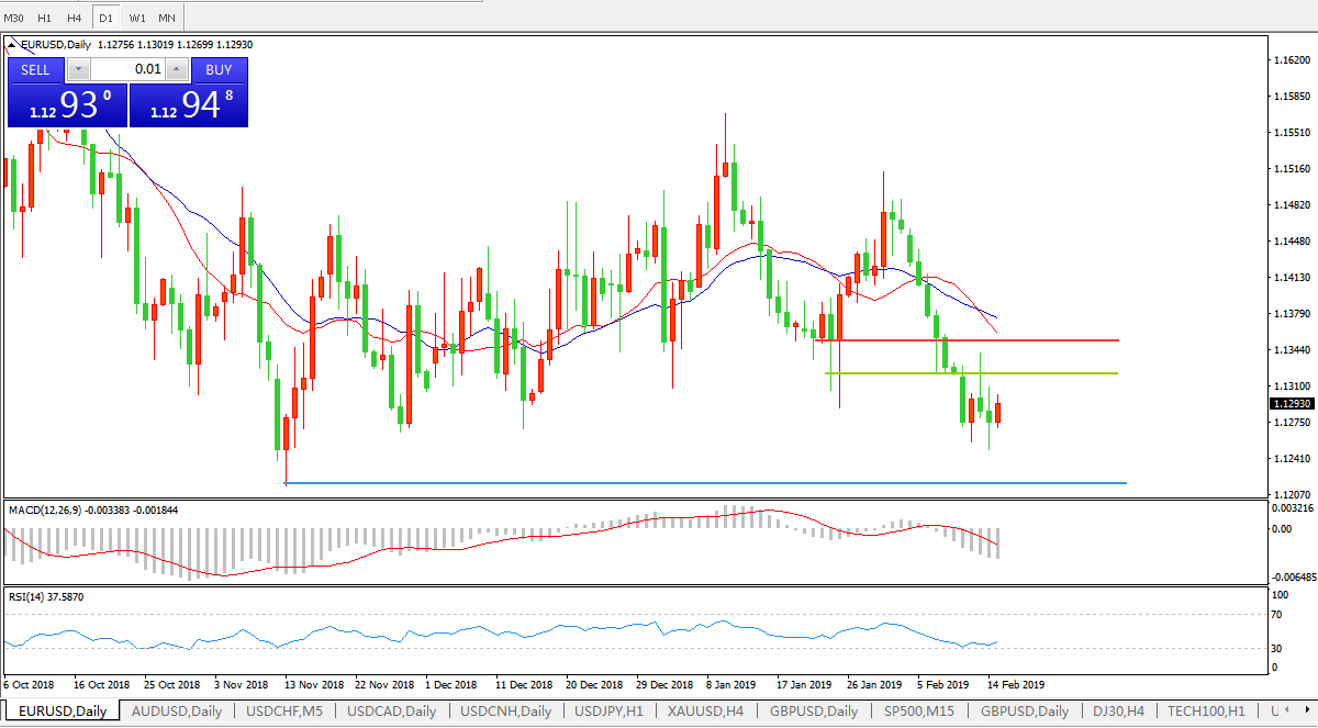 基本面分析:欧元区第四季度GDP季率修正值为0.2%,续创四年新低;法国第四季度ILO失业率录得8.8%,为2009年第一季度以来最低水平;德国第四季度未季调GDP年率初值录得0.9%,虽经济进入停滞,但避免了经济衰退。