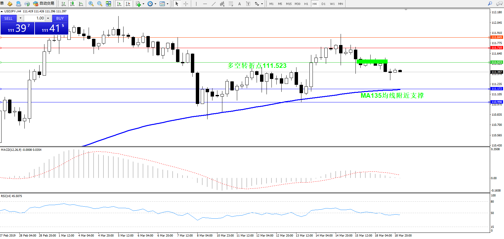 交易策略:111.523下方看跌,目标111.172、110.998