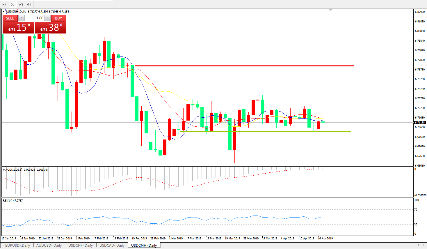 交易策略: 在6.6990之上,看涨,目标价位为6.7845,然后为6.8185。