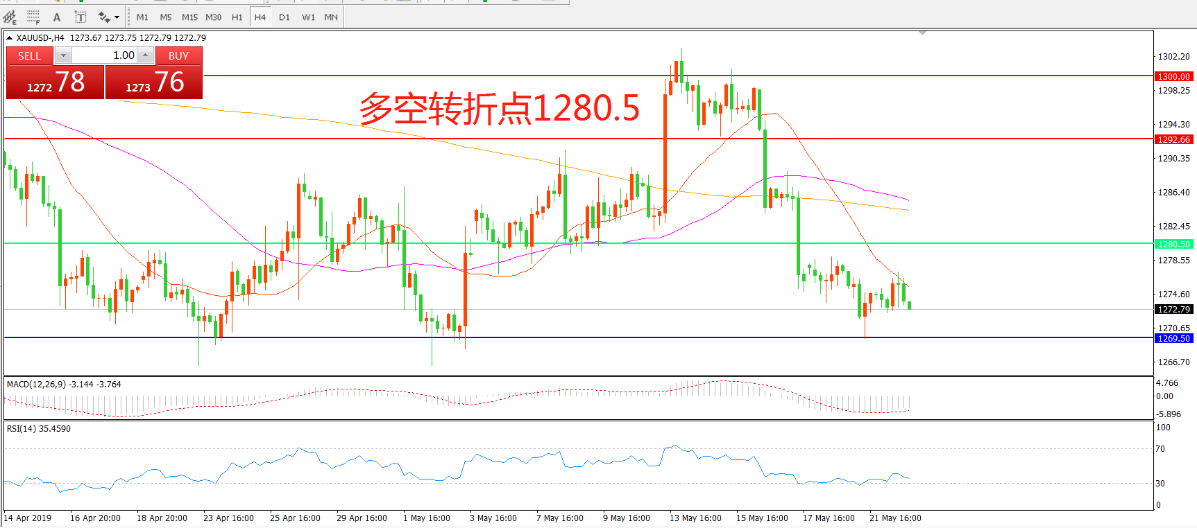 交易策略:在1280.50之下看跌,目标1269.50 1250.00