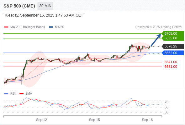 在 6662.00 之上,看涨,目标价位为 6695.00 ,然后为 6705.00 。