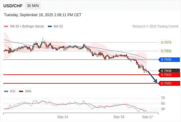在 0.7935 之下,看跌,目标价位为 0.7900 ,然后为 0.7880 。