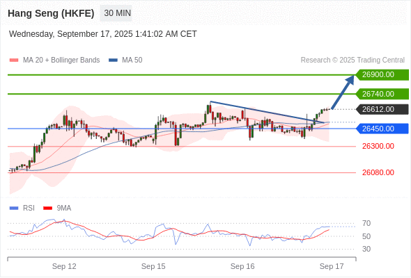 交易策略: 在 26450.00 之上,看涨,目标价位为 26740.00 ,然后为 26900.00 。