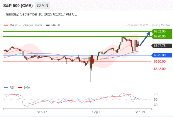 交易策略: 在 6675.00 之上,看涨,目标价位为 6720.00 ,然后为 6732.00 。