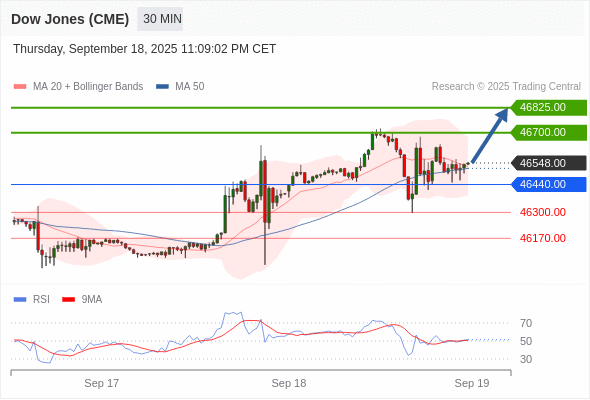 在 46440.00 之上,看涨,目标价位为 46700.00 ,然后为 46825.00 。