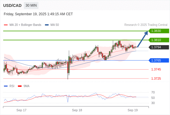在 1.3765 之上,看涨,目标价位为 1.3810 ,然后为 1.3830 。