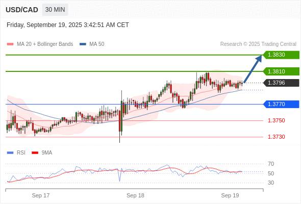 在 1.3770 之上,看涨,目标价位为 1.3810 ,然后为 1.3830 。
