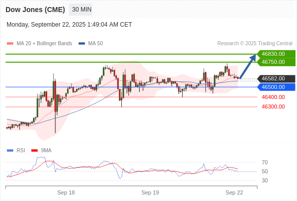 在 46500.00 之上,看涨,目标价位为 46750.00 ,然后为 46830.00 。