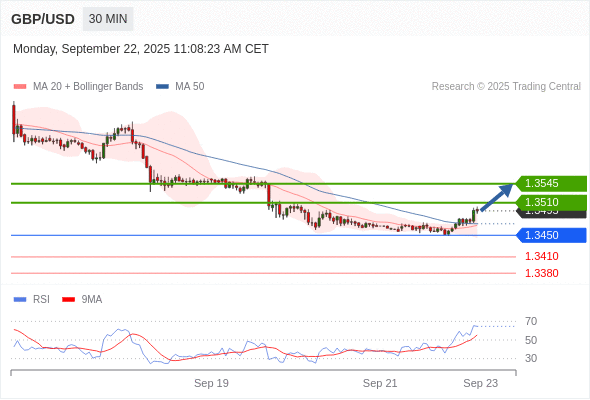 在 1.3450 之上,看涨,目标价位为 1.3510 ,然后为 1.3545 。