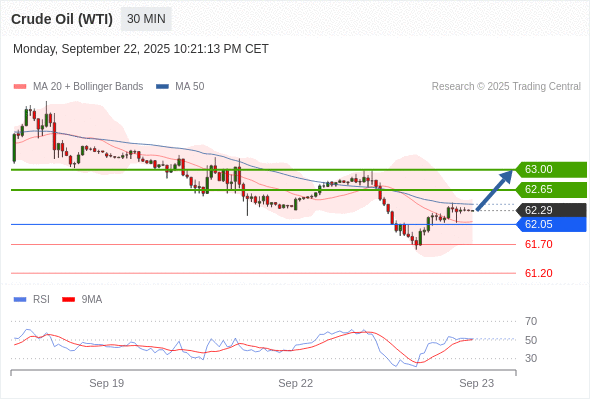 在 62.05 之上,看涨,目标价位为 62.65 ,然后为 63.00 。