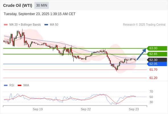 在 62.05 之上,看涨,目标价位为 62.65 ,然后为 63.00 。