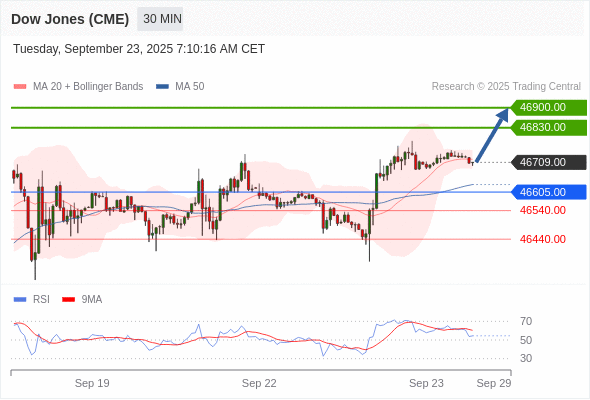 在 46605.00 之上,看涨,目标价位为 46830.00 ,然后为 46900.00 。