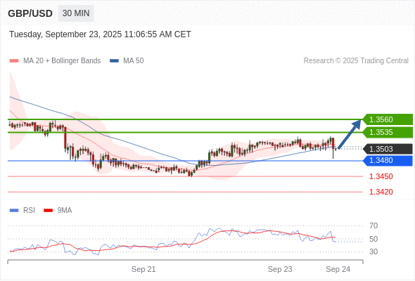 在 1.3480 之上,看涨,目标价位为 1.3535 ,然后为 1.3560 。
