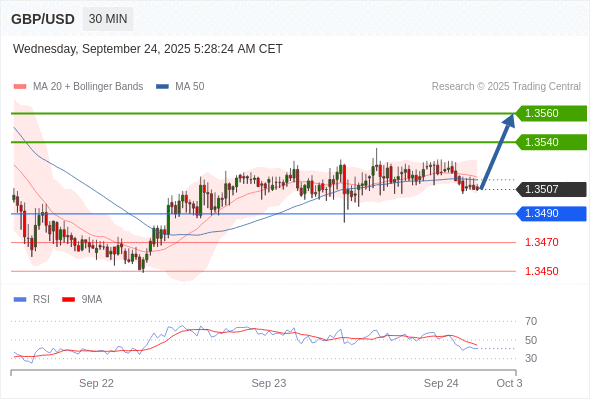 在 1.3490 之上,看涨,目标价位为 1.3540 ,然后为 1.3560 。