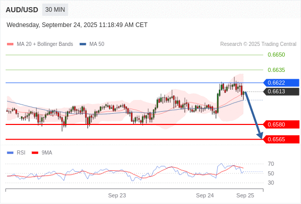 在 0.6622 之下,看跌,目标价位为 0.6580 ,然后为 0.6565 。