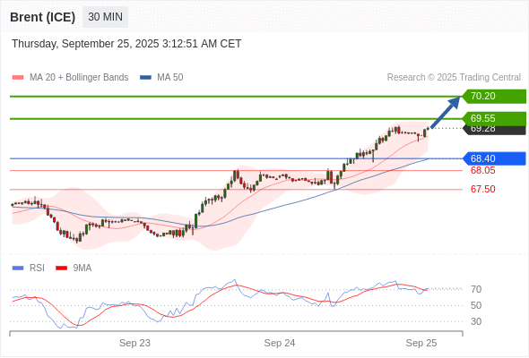 在 68.40 之上,看涨,目标价位为 69.55 ,然后为 70.20 。