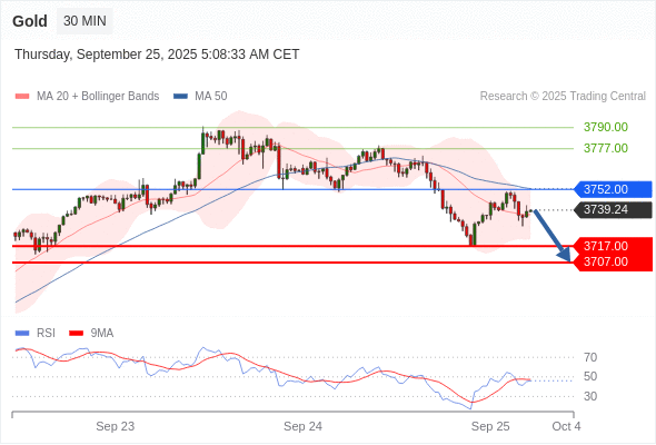 交易策略: 在 3752.00 之下,看跌,目标价位为 3717.00 ,然后为 3707.00 。