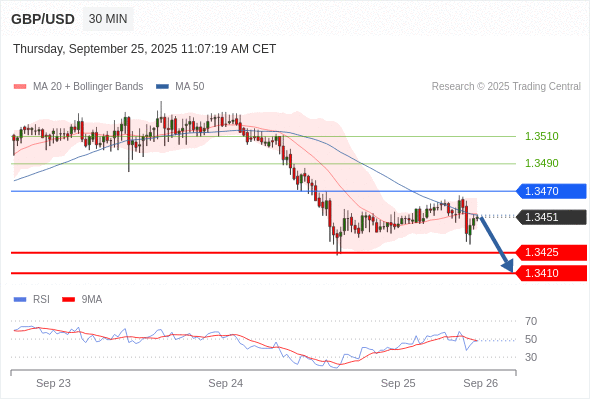 在 1.3470 之下,看跌,目标价位为 1.3425 ,然后为 1.3410 。