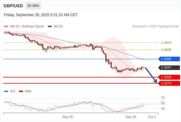 在 1.3390 之下,看跌,目标价位为 1.3300 ,然后为 1.3270 。