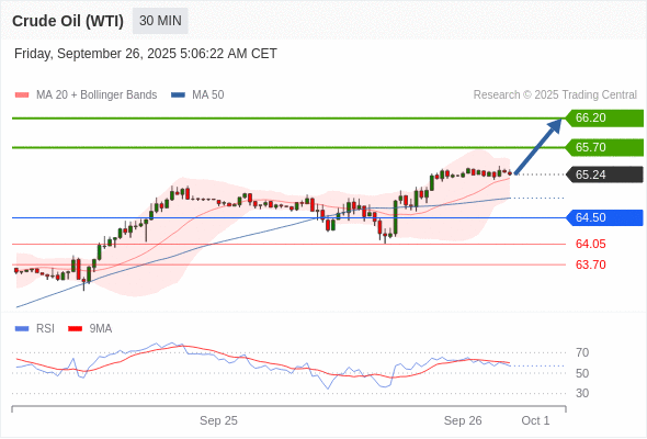 在 64.50 之上,看涨,目标价位为 65.70 ,然后为 66.20 。