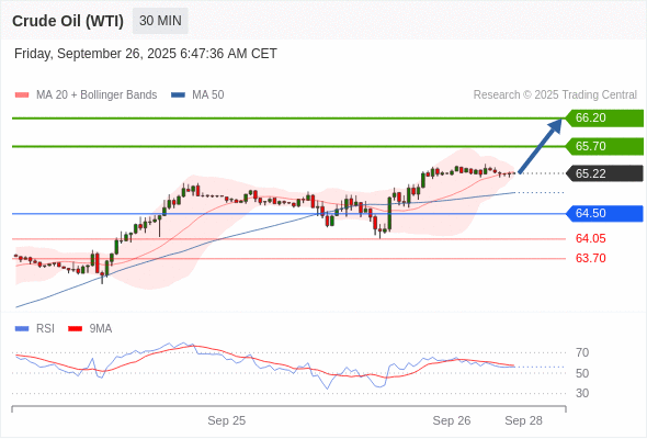 在 64.50 之上,看涨,目标价位为 65.70 ,然后为 66.20 。