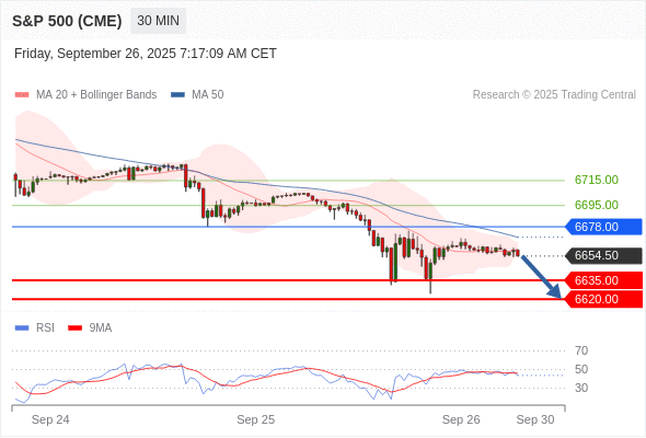 美国标普500指数期货 (Z5) 当日内: 短期关键阻力位在6678.00。