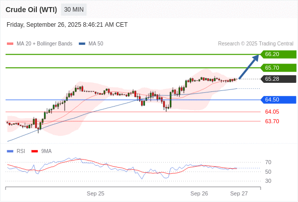 在 64.50 之上,看涨,目标价位为 65.70 ,然后为 66.20 。