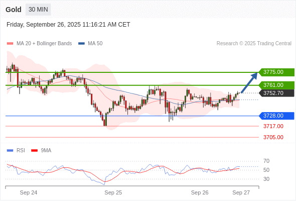在 3728.00 之上,看涨,目标价位为 3761.00 ,然后为 3775.00 。