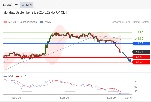 在 149.35 之下,看跌,目标价位为 148.65 ,然后为 148.40 。