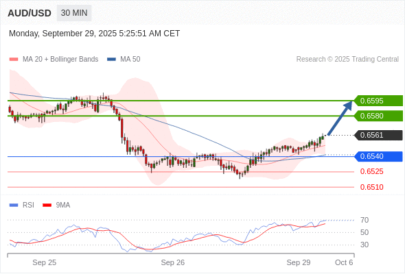 在 0.6540 之上,看涨,目标价位为 0.6580 ,然后为 0.6595 。
