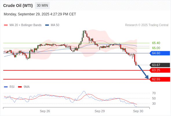 在 64.60 之下,看跌,目标价位为 63.25 ,然后为 62.55 。