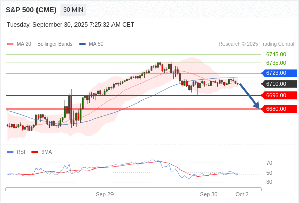 美国标普500指数期货 (Z5) 当日内: 短期关键阻力位在6723.00。