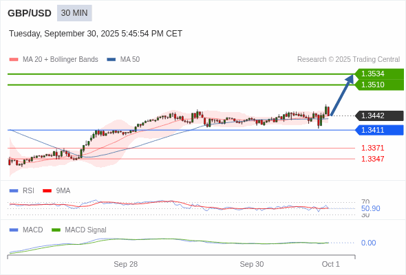 交易策略: 看涨,当 1.3411 为支撑位。