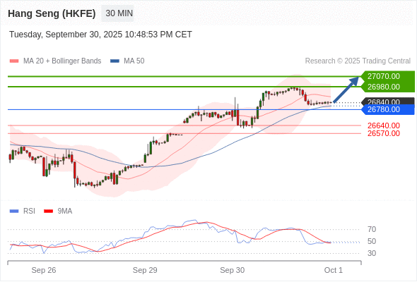 在 26780.00 之上,看涨,目标价位为 26980.00 ,然后为 27070.00 。