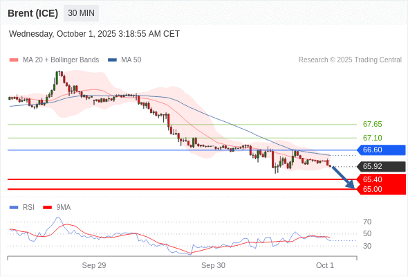 在 66.60 之下,看跌,目标价位为 65.40 ,然后为 65.00 。