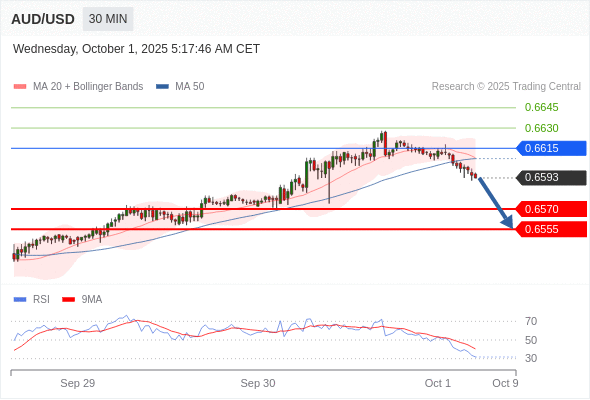在 0.6615 之下,看跌,目标价位为 0.6570 ,然后为 0.6555 。