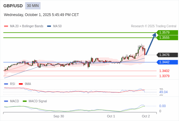 替代方案: 在1.3442以下,期待1.3402和1.3379。