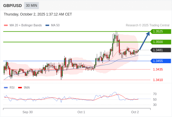 在 1.3455 之上,看涨,目标价位为 1.3500 ,然后为 1.3525 。