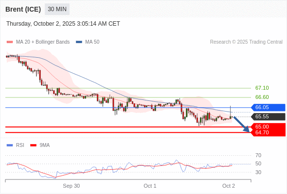 在 66.05 之下,看跌,目标价位为 65.00 ,然后为 64.70 。