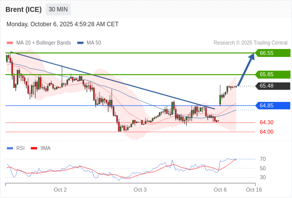 在 64.85 之上,看涨,目标价位为 65.85 ,然后为 66.55 。
