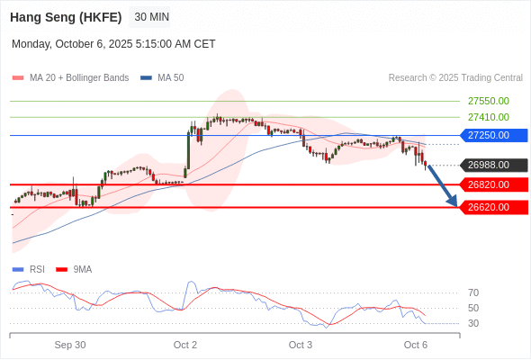 在 27250.00 之下,看跌,目标价位为 26820.00 ,然后为 26620.00 。