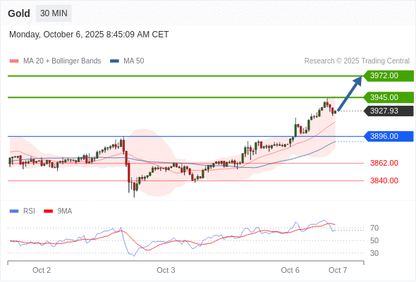 在 3896.00 之上,看涨,目标价位为 3945.00 ,然后为 3972.00 。
