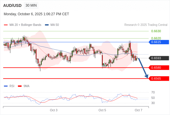 在 0.6615 之下,看跌,目标价位为 0.6585 ,然后为 0.6565 。