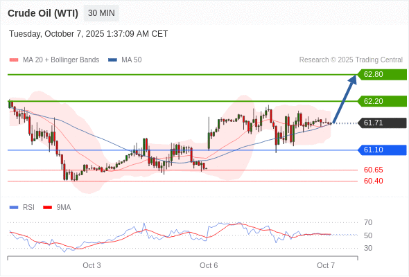 在 61.10 之上,看涨,目标价位为 62.20 ,然后为 62.80 。