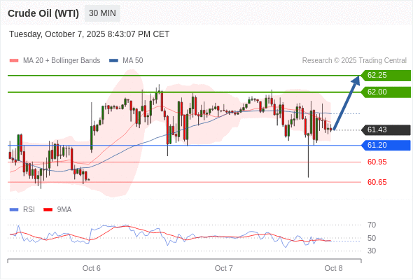 在 61.20 之上,看涨,目标价位为 62.00 ,然后为 62.25 。