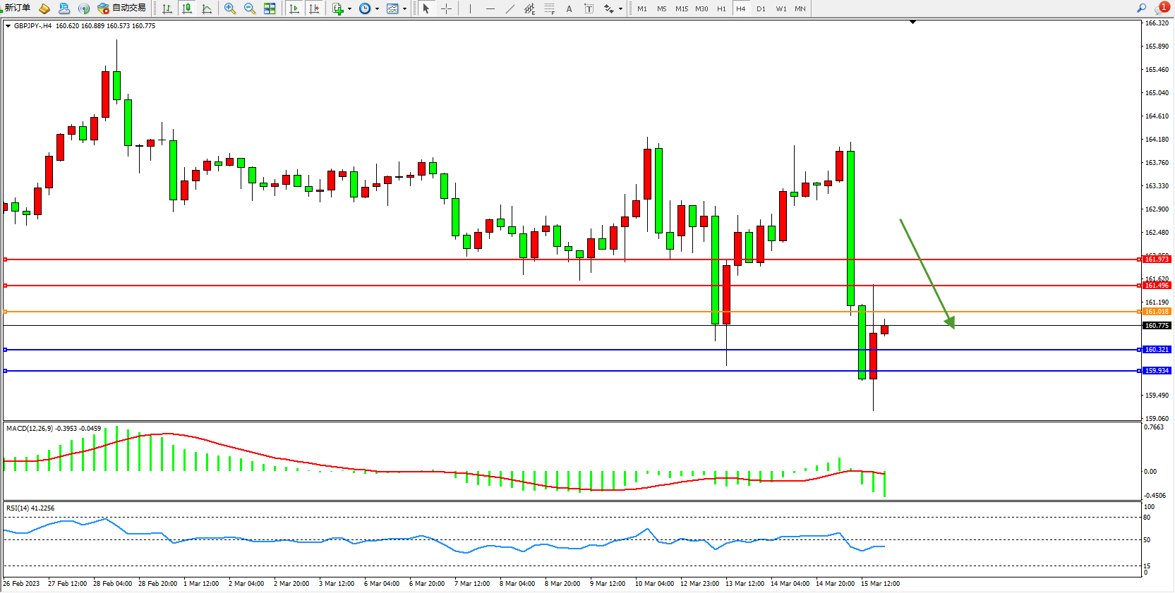 交易策略:161.018下方看跌,目标160.321 159.934