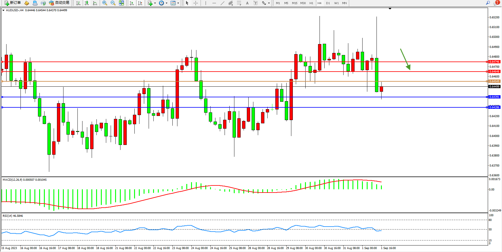 交易策略:0.64549下方看跌,目标0.64391 0.64286