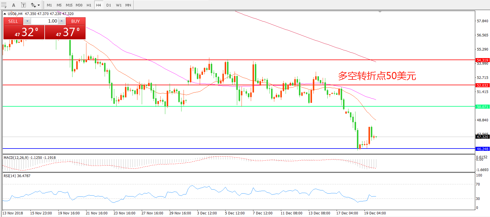 沙特能源部长法利赫周二(12月19日)发表讲话称,石油输出国组织(OPEC)和俄罗斯等非OPEC产油国将在2019年内延长减产,从而帮助稳定油市。国际油价第四季度以来已经大跌33%,这也导致沙特为首的OPEC宣布将会在1月1日开始再度减产,其中沙特减幅将是最大,达到40万桶/日。而美国能源信息署(EIA)周三(12月19日)公布报告显示,上周美国原油库存小幅下降,但精炼油库存跌幅创今年3月以来最大,在EIA数据和沙特减产的表态的作用下,WTI原油暂时企稳,迈向48美元