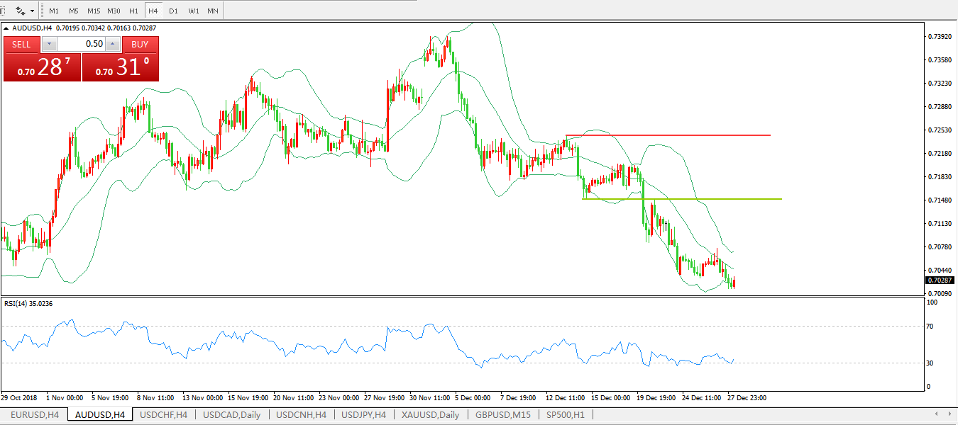 交易策略:在0.7148之下,看跌,目标价位为0.7085,然后为0.7000。