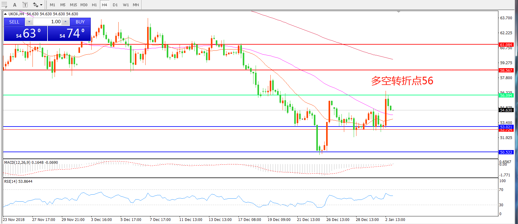 备选策略:在56.00之上看涨,目标58.00 61.00